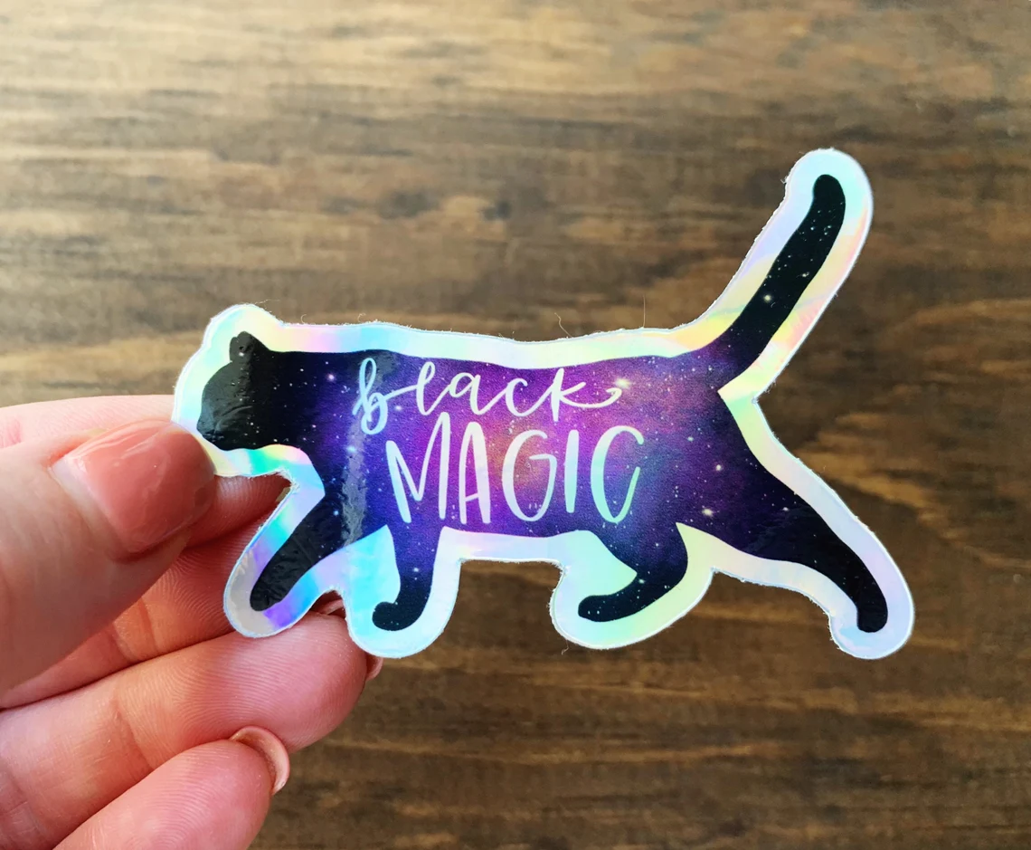 These hand-drawn stickers are printed on durable, high opacity holographic adhesive vinyl which makes them perfect for regular use, as well as for covering other stickers or paint. The high-quality vinyl ensures there are no bubbles when applying the stickers, and the stickers can be used both indoors and outdoors. Perfect for laptops, water bottles, car windows, and iPad cases.